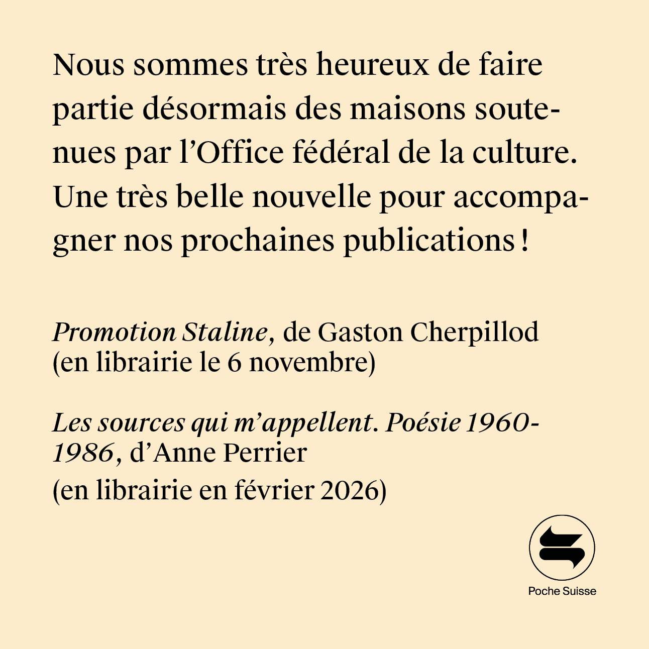 La collection « Poche Suisse » bénéficie du soutien des Éditions Noir sur Blanc, passeur entre les cultures
